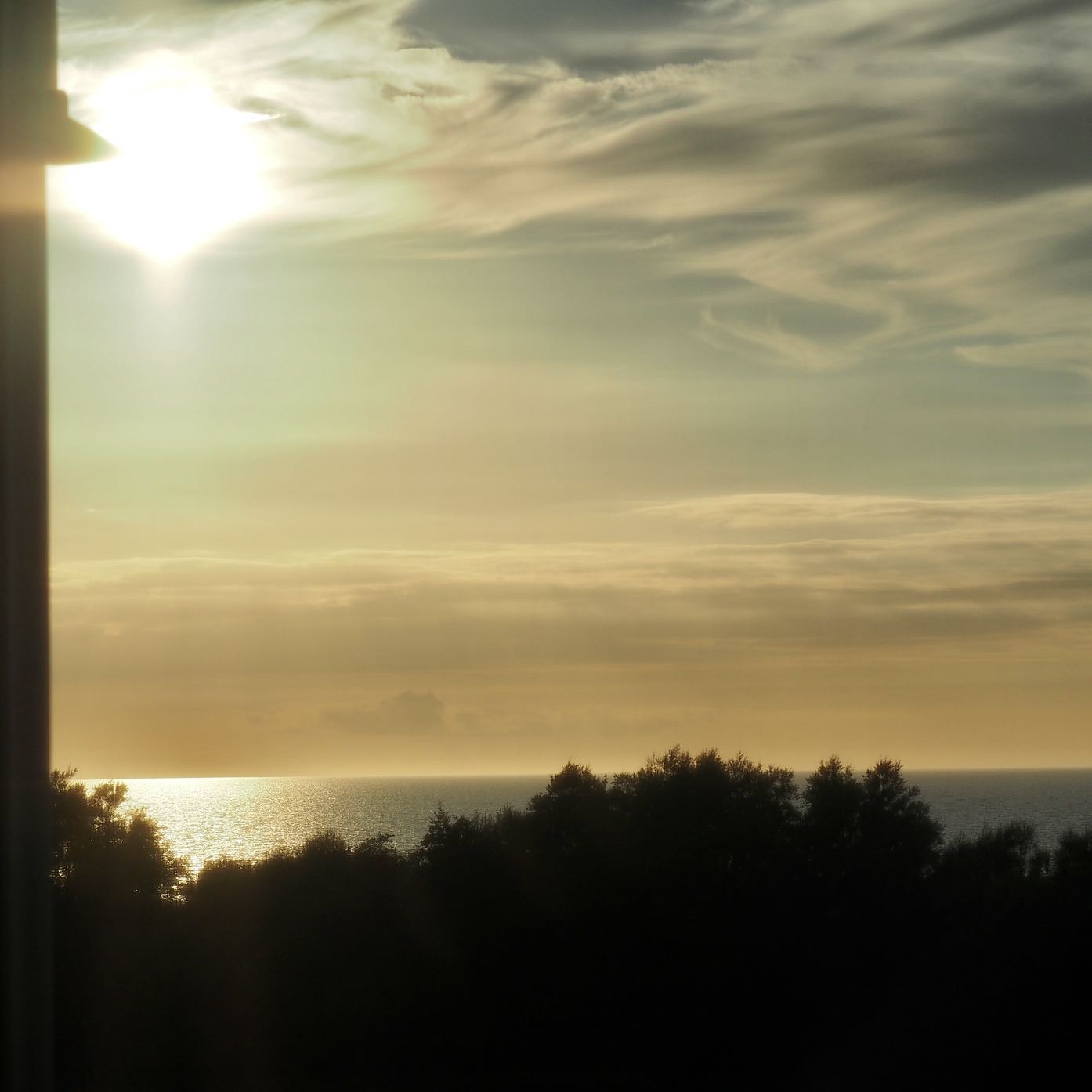 Nach dem ziemlich besten Frühstück genießen wir noch den Komfort des Hotels mit Blick auf die Ostsee …